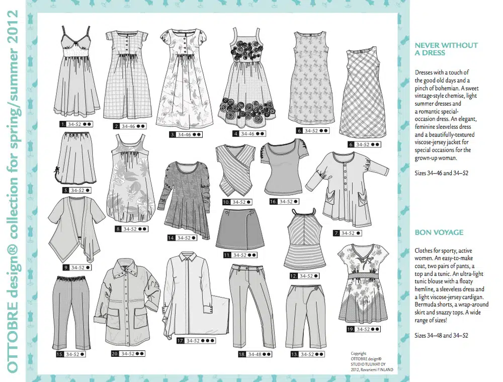 • Includes: Pattern sheets and patterns for sizes 34-52 cm
