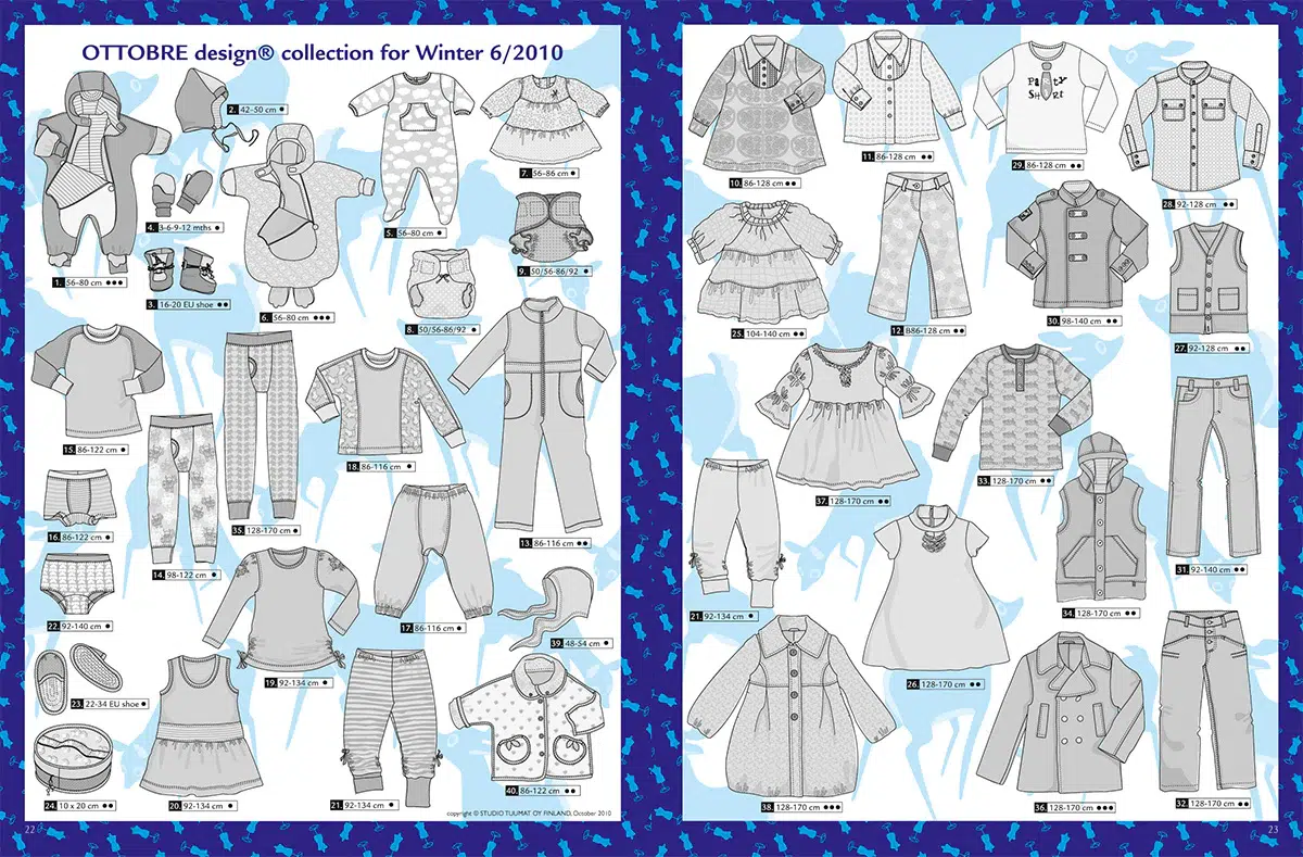 OTTOBRE design® kids is an enchanting sewing pattern magazine, full of inspiration for creating garments for children of all ages. Each issue contains 25–30 beautiful and practical patterns, which include detailed sewing instructions and material lists.