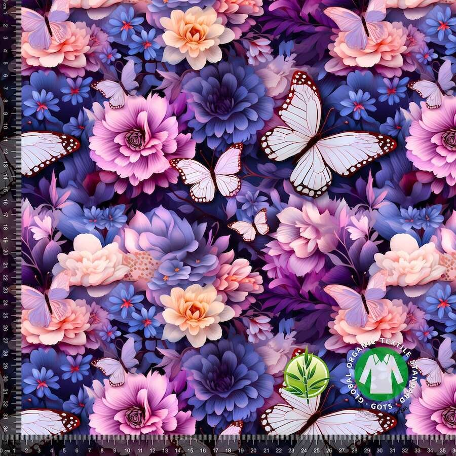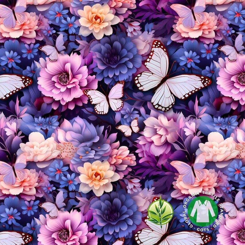 Bamboo Jersey flowers and butterflies GOTS digital print