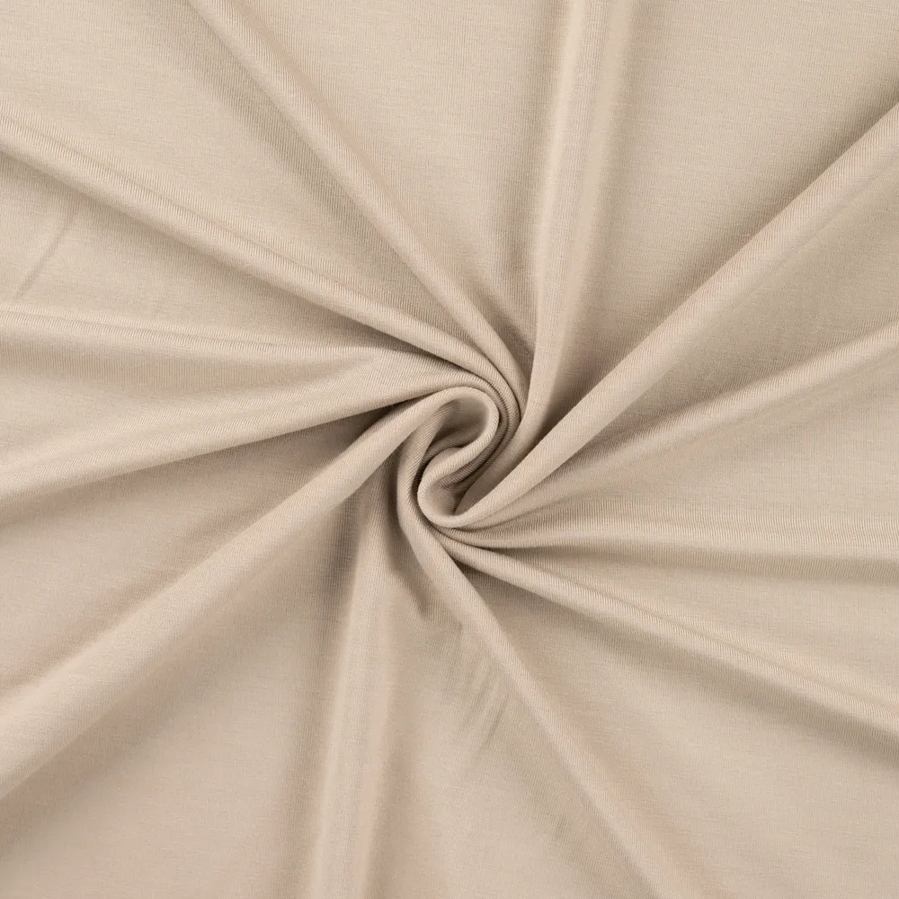 Bamboo Jersey is a stretchy and skin-friendly fabric made from bamboo viscose, with a silky touch, breathable and moisture-absorbing. It is the ideal choice for clothes for both babies and adults, underwear, nightwear, and light blouses or dresses.