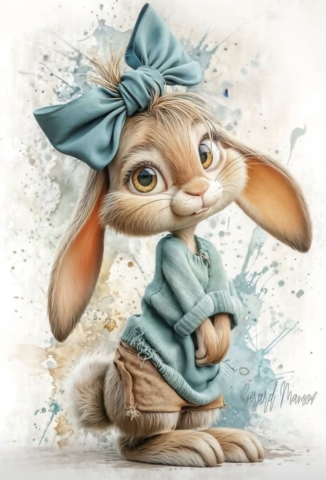 Armas jänes sinise lipsuga ja kampsuniga