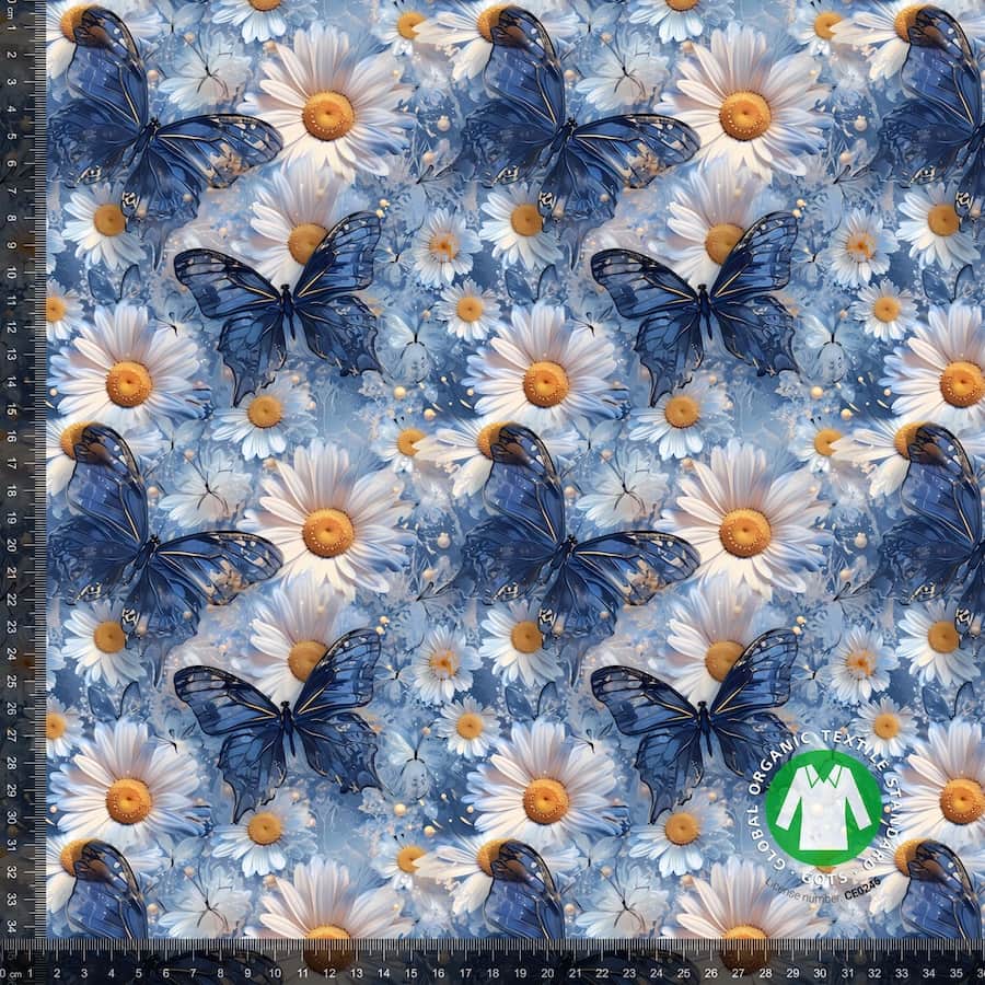 Patterned organic cotton jersey knit is a soft, stretchy, and breathable fabric that is ideal for everyday wear for both children and adults. The fabric is made from organically grown cotton, grown in accordance with environmentally friendly and chemical-free production principles.