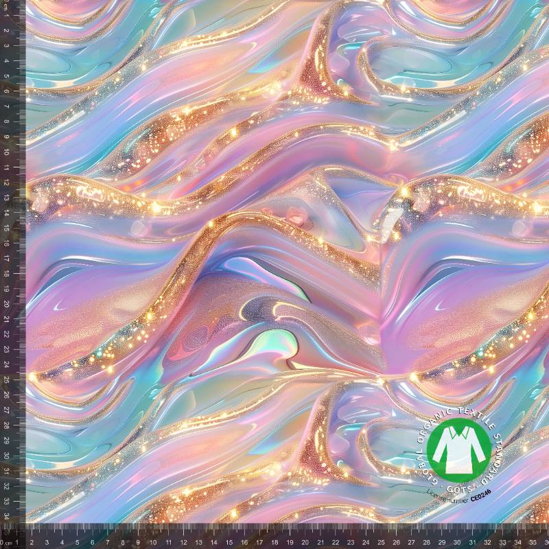 Patterned organic cotton jersey is a soft, stretchy, and breathable fabric, perfect for everyday wear for both children and adults. The fabric is made from ecologically grown cotton, cultivated following environmentally sustainable and chemical-free production principles.