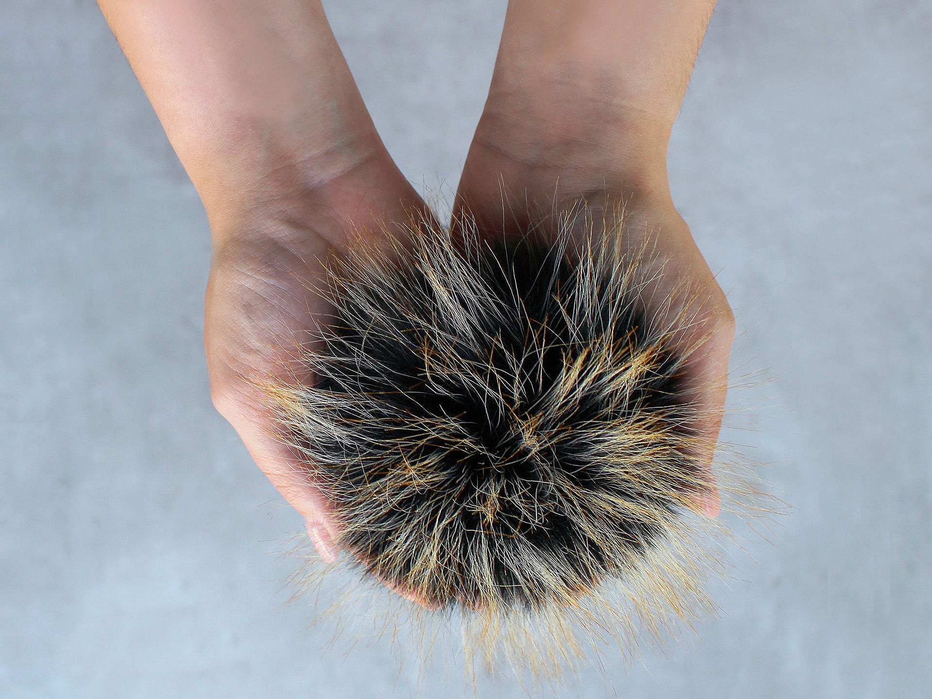 The furry pompom is fluffy and pleasantly soft to the touch. It has a small elastic loop that allows you to pull the pompom through the hat fabric and use it as a classic pompom. We recommend sewing a button inside the hat to which the elastic loop can be comfortably attached. The loop can also be used to attach a carabiner – for example as a bag charm, backpack, or keychain pendant.
