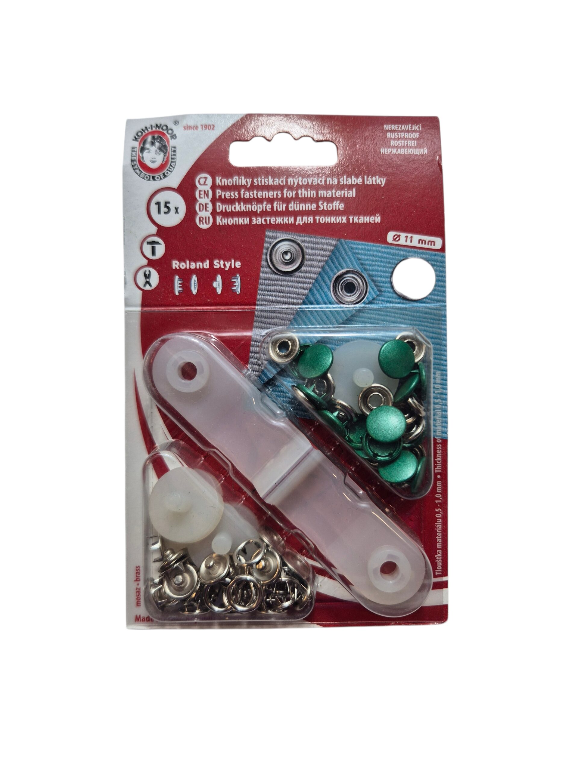 - Non-sew snaps for thinner fabrics