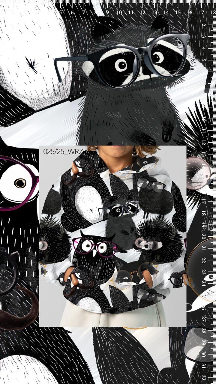 Mustvalge loomamustriga kapuutsiga dressipluus
