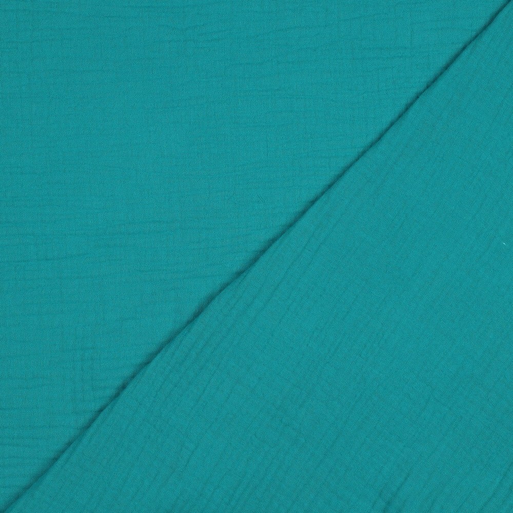 Türkiissinine musliinkangas keeratud voldiga