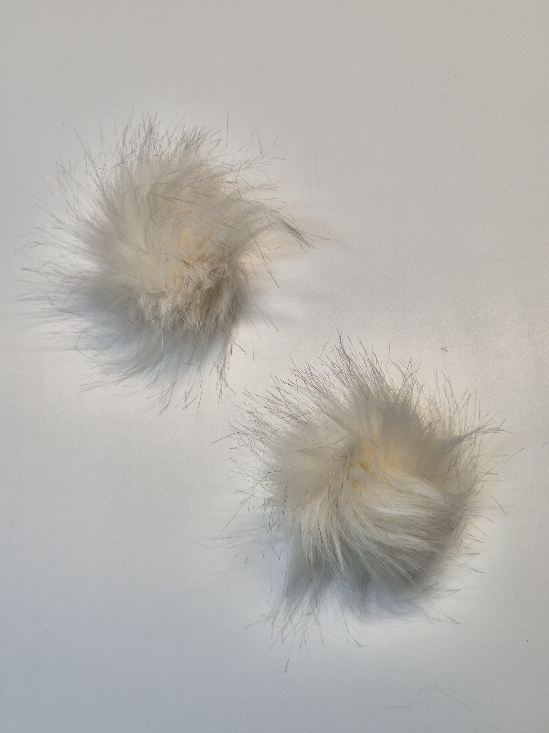 Kaks valget karvast pom-pom palli valgel taustal