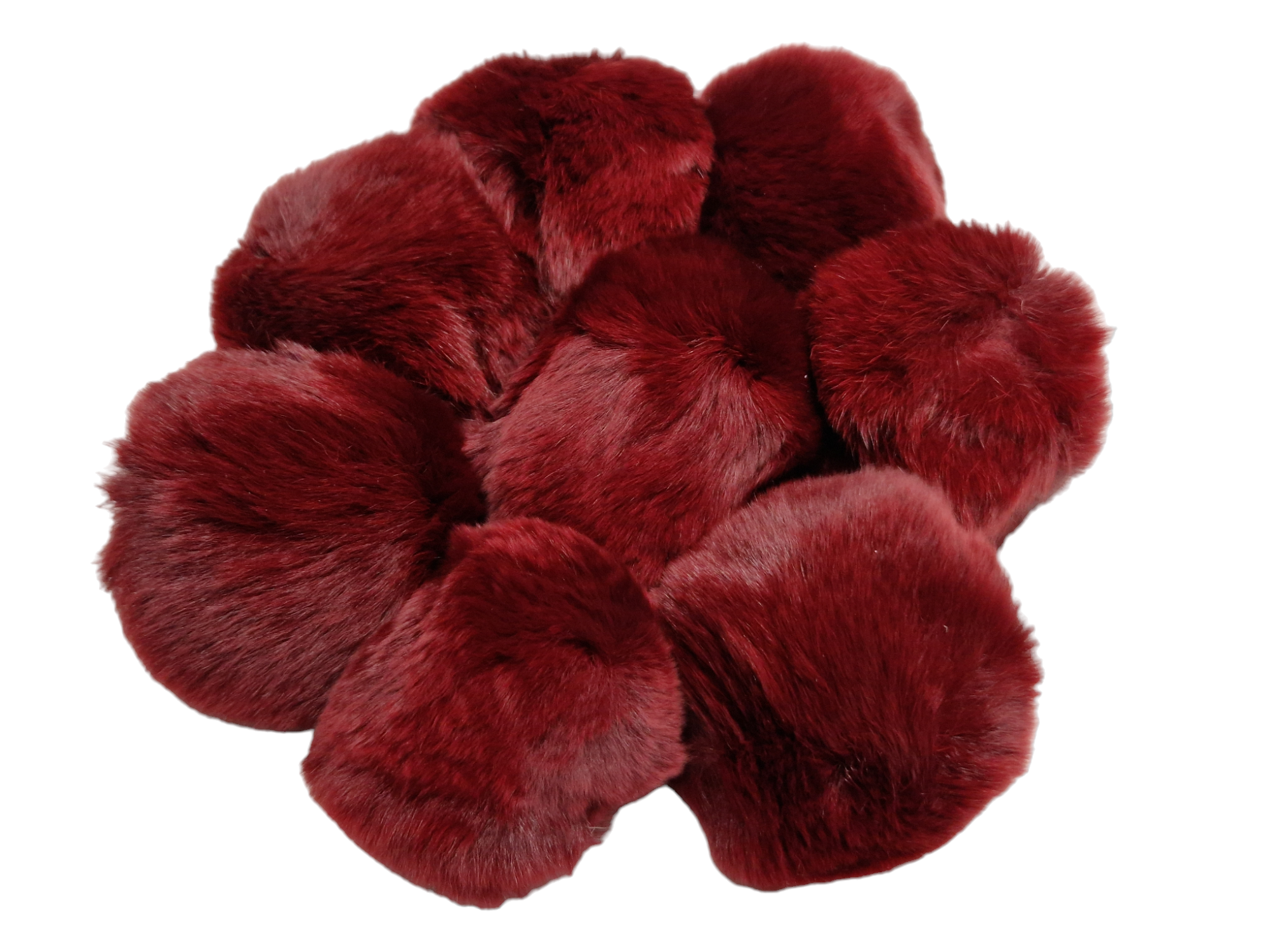 Tumepunased karvased pompomid koos hunnikus