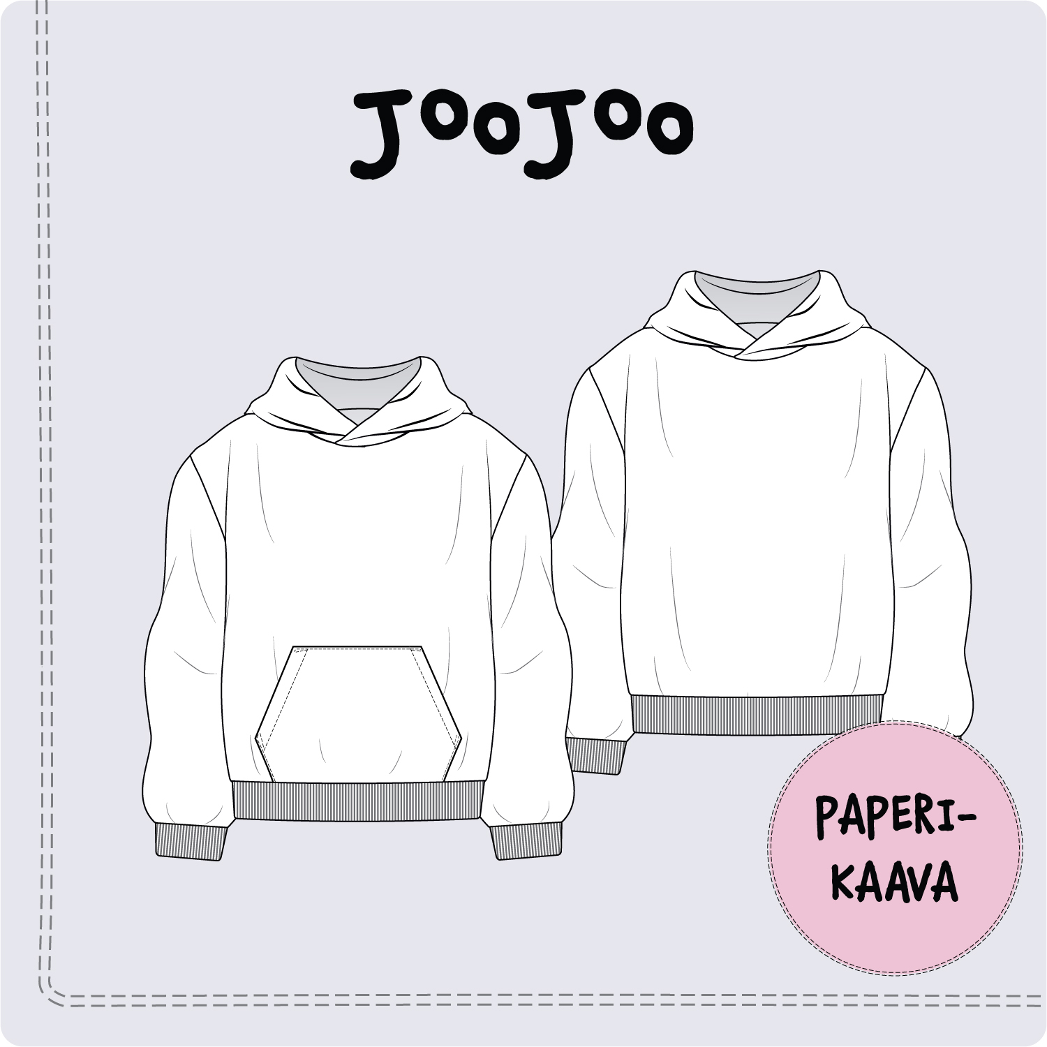 See lõige sisaldab paberlõikeid ja soomekeelseid pildilisi juhendeid laste oversize-stiilis JOOJOO dressipluusi kapuutsiga õmblemiseks. Dressipluus on lõikelt avar ja mugav, klassikalises oversize-stiilis. Dressipluus saab õmmelda kängurutaskuga või ilma taskuta.