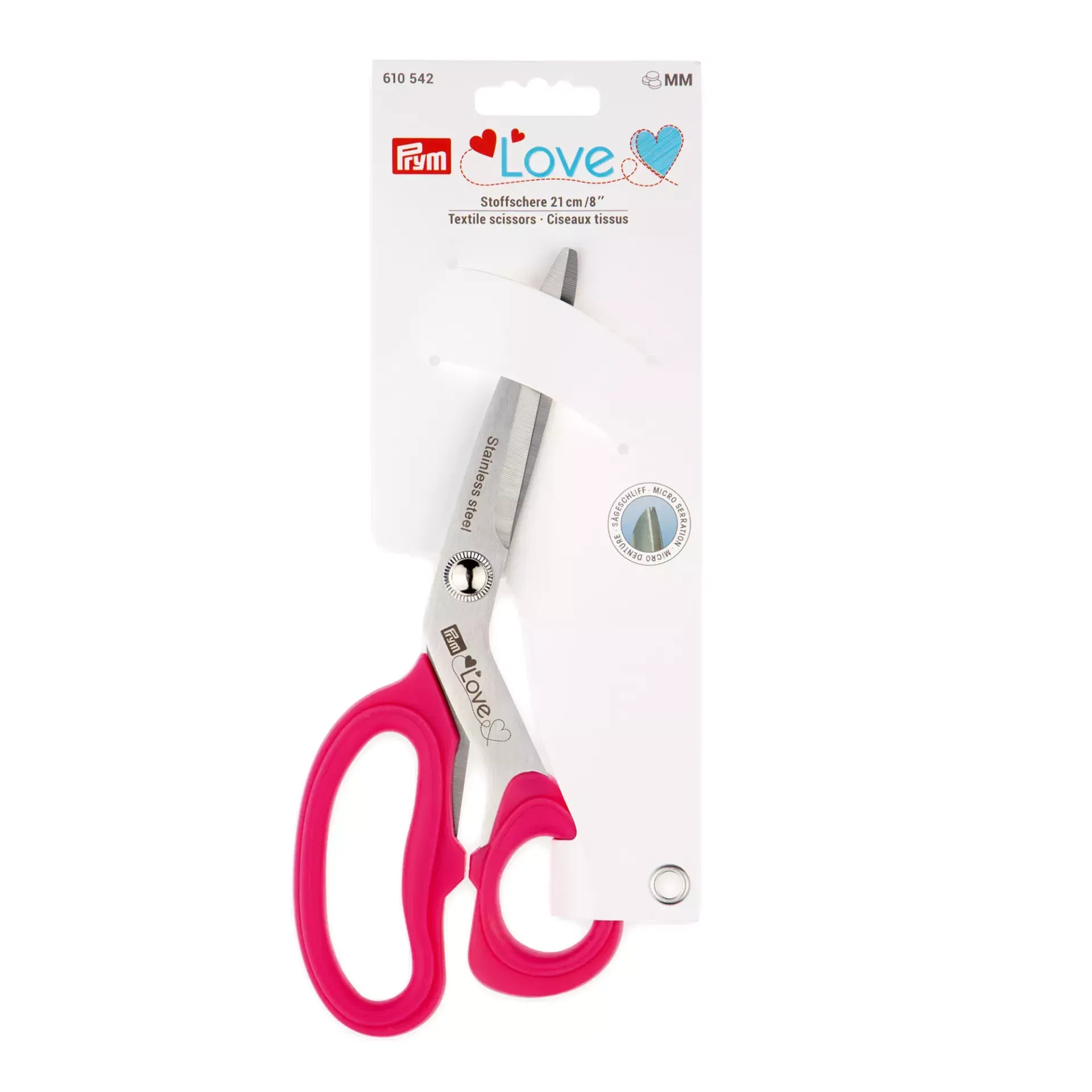 Prym Love sarja tekstiilkääride kvaliteet on muljetavaldav: kogu tera ulatuses kuni tipuni pakuvad need maksimaalset lõikeohutust ja täpsust väga erinevate kangaste jaoks. Terade eriline peen sakiline serv hoiab siidi ja sünteetilisi kiude sisaldavaid kangaid libisemast.