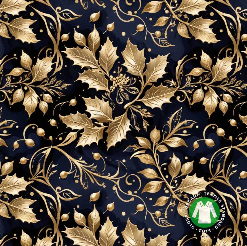 Trikotaaž jõulupuuoksad sinisel GOTS digital print