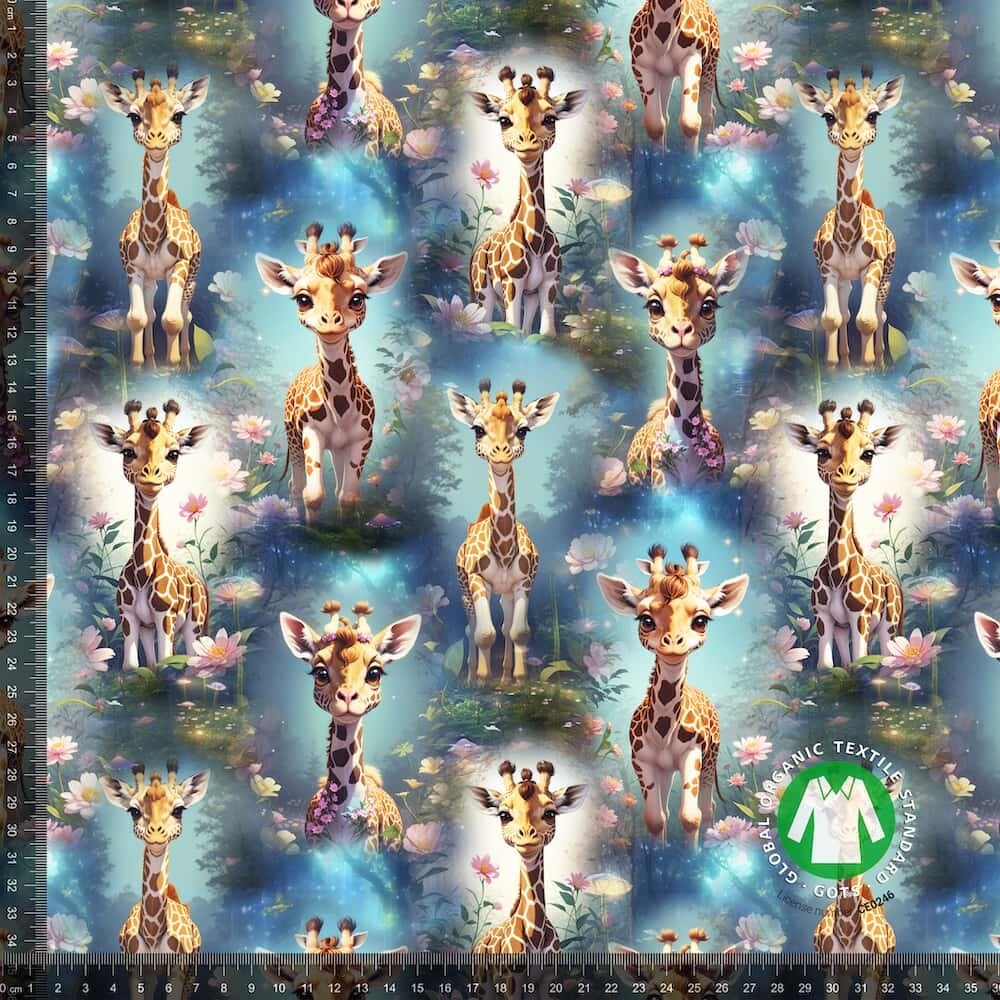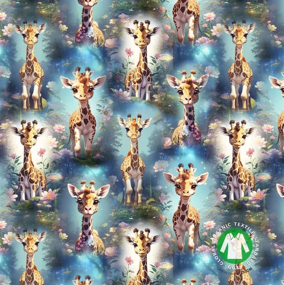 Trikotaaž kaelkirjakud ja lilled GOTS digital print