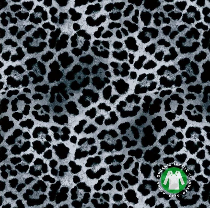 Mustvalge leopardimustriline kangas orgaanilisest puuvillast