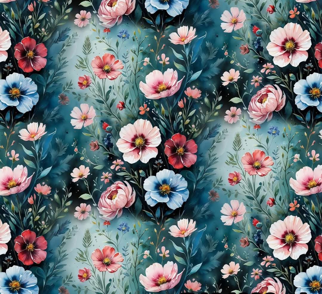 Värviline lillemuster sinisel taustal dekoratsiooniks