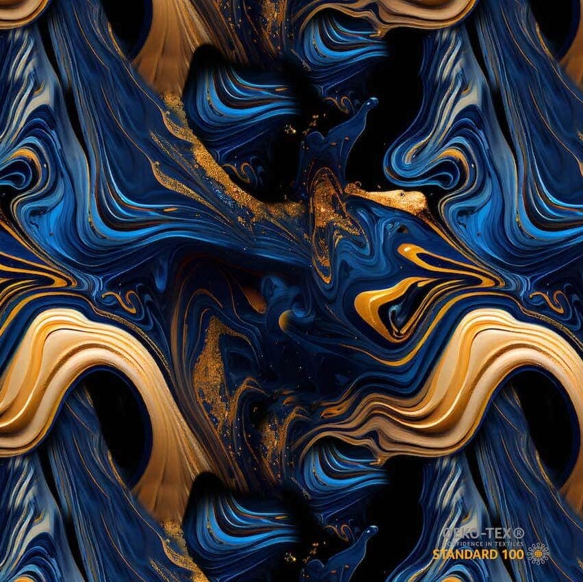 Trikotaaž navy, sinine, kuldne marmor digital print