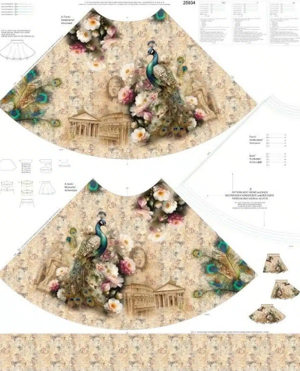 Trikotaaž seelikupaneel Vintage paabulind 180×150 cm digital print