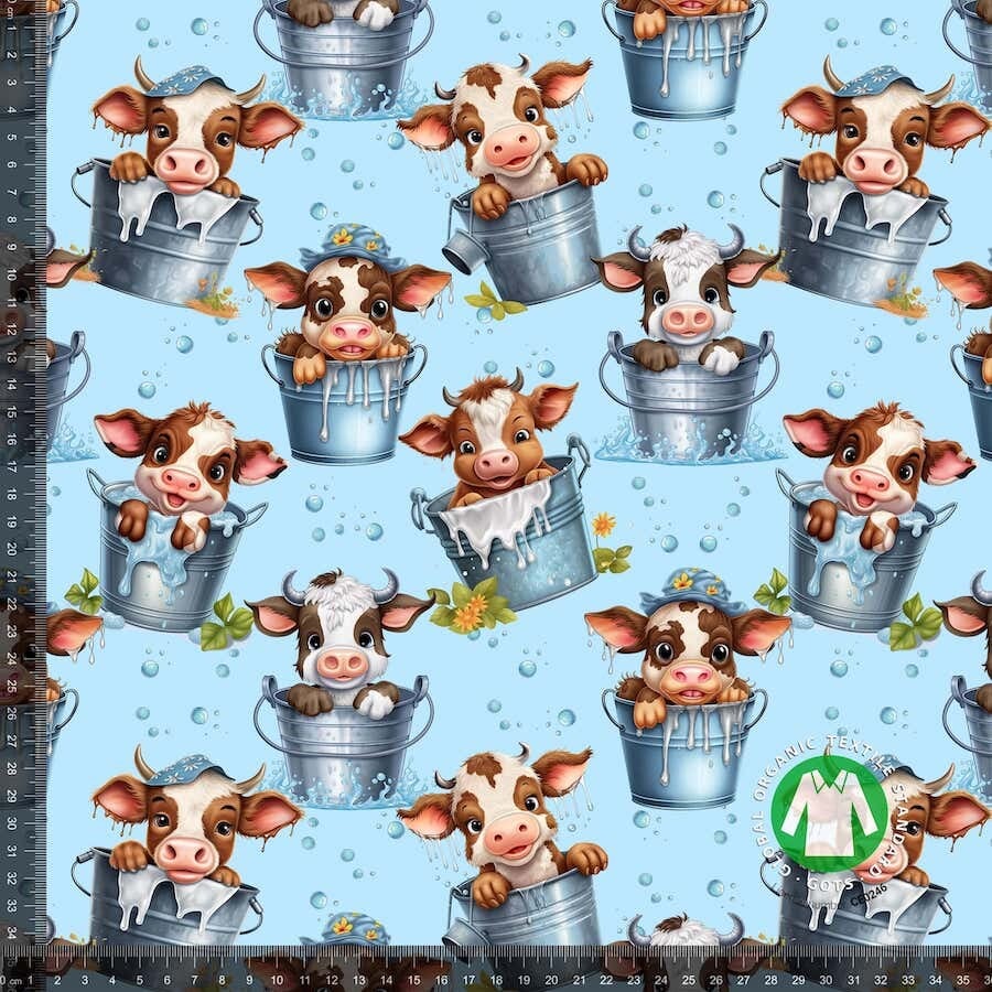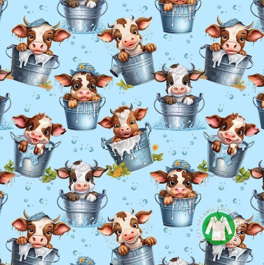 Trikotaaž vasikad ämbris helesinisel GOTS digital print