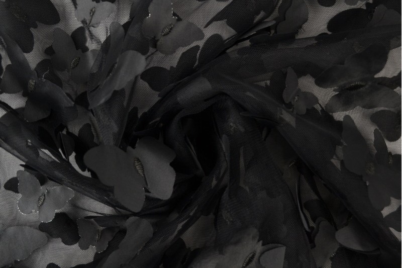 3D tüll on efektne ja eriline kangas, millel on tüllipinnale lisatud ruumilised kaunistused – olgu need siis lillemotiivid, volangid või muud dekoratiivsed elemendid. Tänu kolmemõõtmelisele struktuurile on kangal ainulaadne ja luksuslik välimus, mis püüab pilke ja lisab igale esemele erilise ilme.