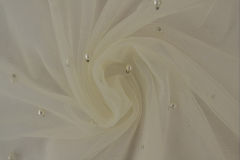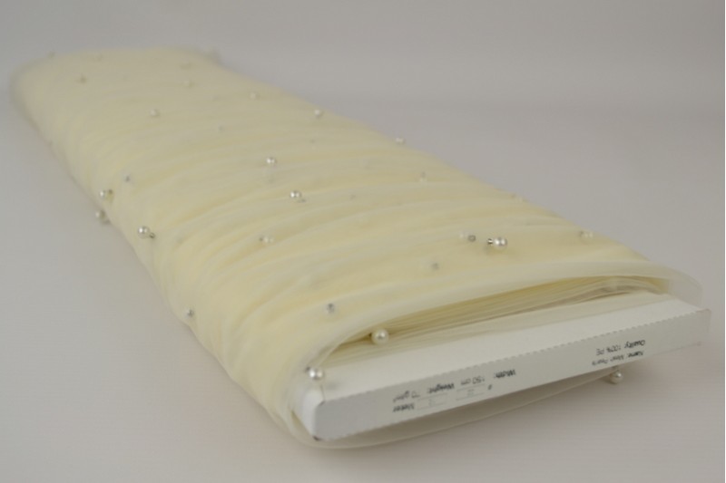 Pehme tüll pärlitega on õhuline ja elegantne kangas, millele õmmeldud väikesed pärlid loovad luksusliku ja romantilise ilme. Pärlid lisavad peenelt sära ja kolmemõõtmelist tekstuuri, muutes iga rõiva või aksessuaari ainulaadseks ja pidulikuks.