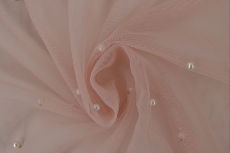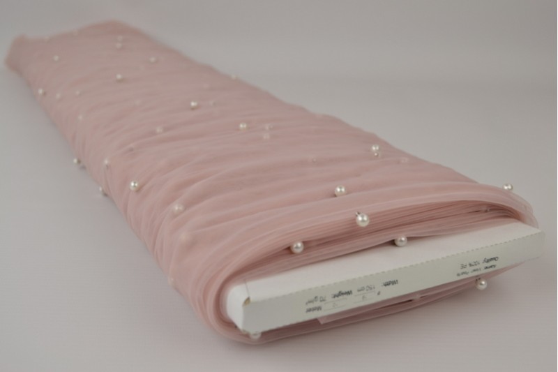 Pehme tüll pärlitega on õhuline ja elegantne kangas, millele õmmeldud väikesed pärlid loovad luksusliku ja romantilise ilme. Pärlid lisavad peenelt sära ja kolmemõõtmelist tekstuuri, muutes iga rõiva või aksessuaari ainulaadseks ja pidulikuks.