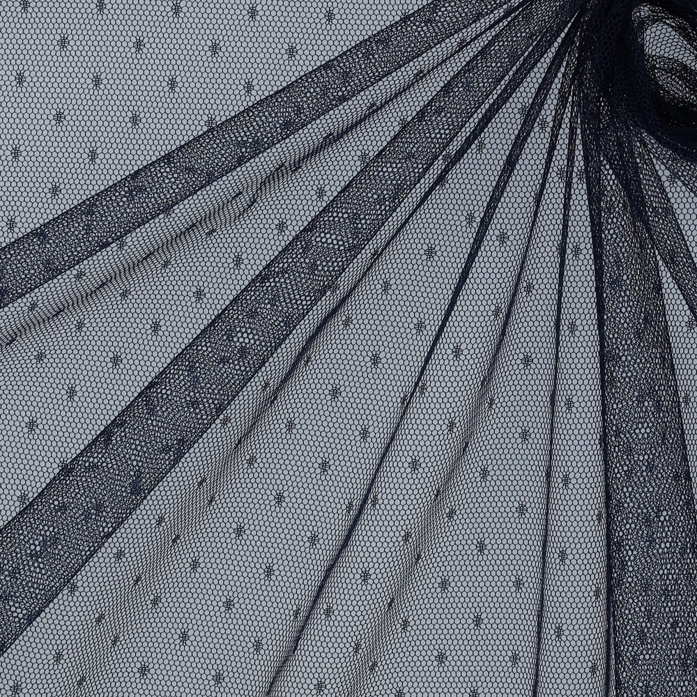 Must täpitriibuline tüllkangas keerutatud mustriga