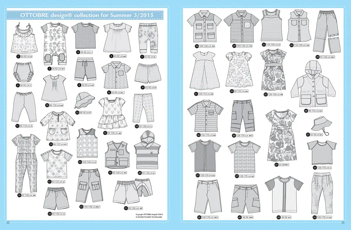 OTTOBRE design® kids on ihastuttava ompelukaavalehti, joka on täynnä inspiraatiota kaikenikäisten lasten vaatteiden luomiseen. Jokaisessa numerossa on 25–30 kaunista ja käytännöllistä kaavaa, joiden mukana on yksityiskohtaiset ompeluohjeet ja materiaaliluettelot.