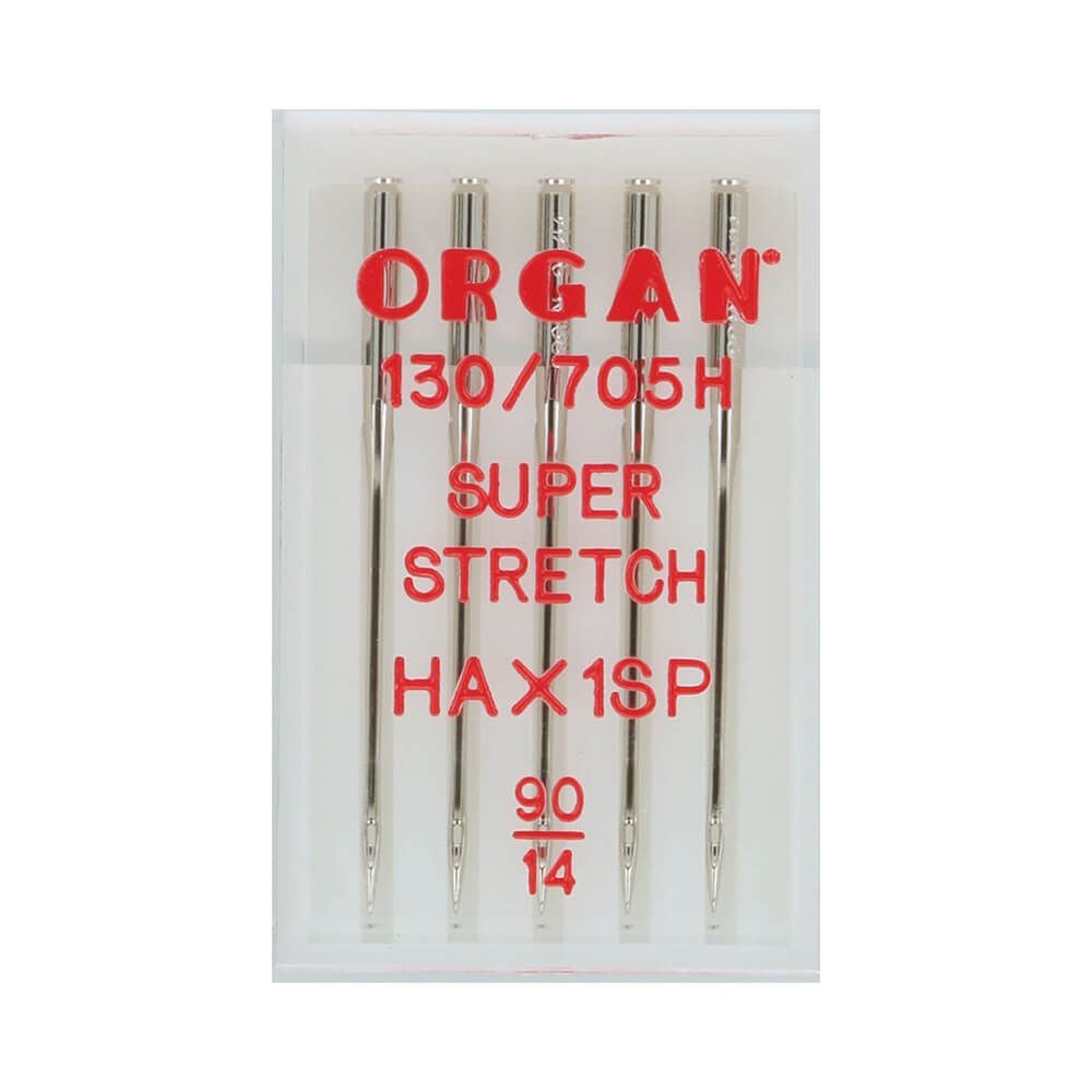 ORGAN Super Stretch pallokärkine neula – erityisesti joustaville materiaaleille: simplex, lateksi, Lycra, urheilukankaat ja voimakkaasti joustavat neulotut materiaalit. Paksunnettu neulansilmä lisää läpäisyaluetta, keskikokoinen pallokärki liukuu pehmeästi kangaskuitujen välissä ja erityisesti muotoiltu uurre vähentää väliin jääviä tikkejä. Sopii erinomaisesti helposti joustaviin ja tiheästi neulottuihin kankaisiin – trikoo, urheilu- ja aktiivivaatteisiin sekä joustaviin kankaisiin. Sopiva neulajärjestelmä: 130/705 HAx1SP (ja muut vastaavat kotikoneisiin). Neula, joka ymmärtää joustavuuden ja tekee saumoja, jotka liikkuvat kanssasi.