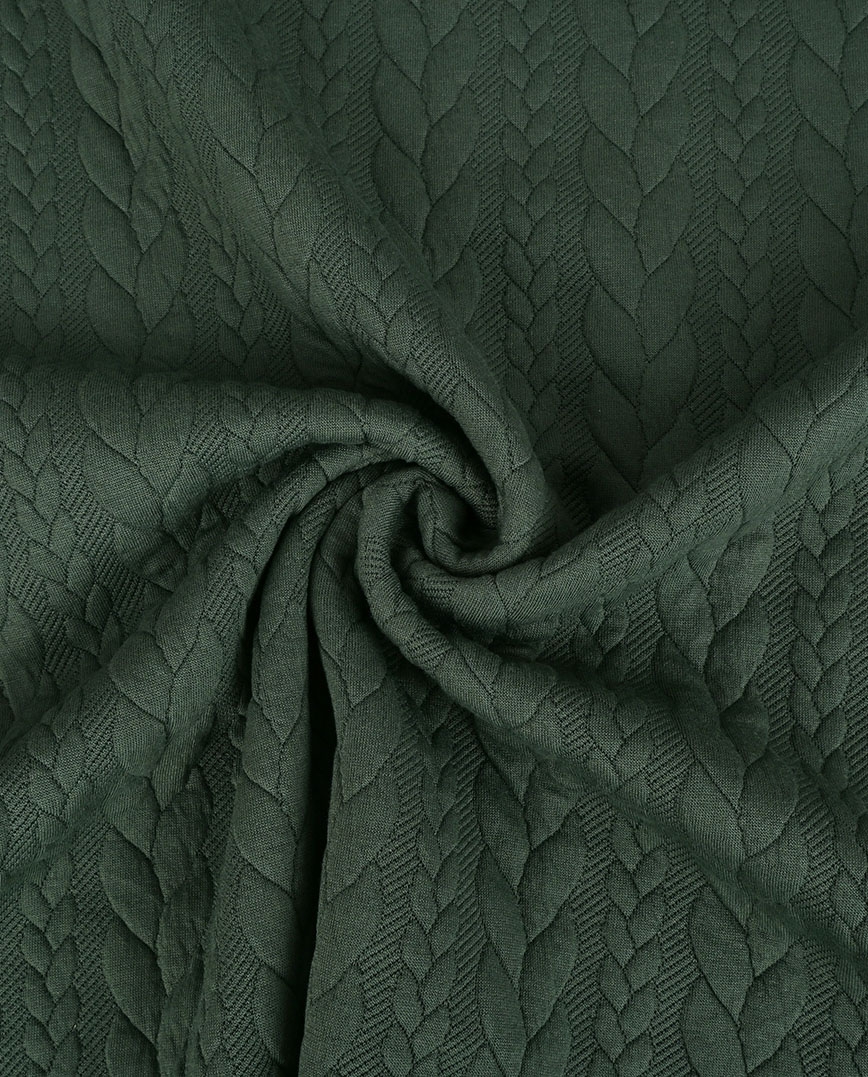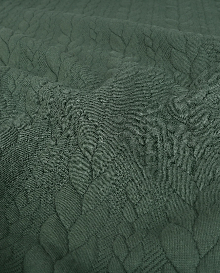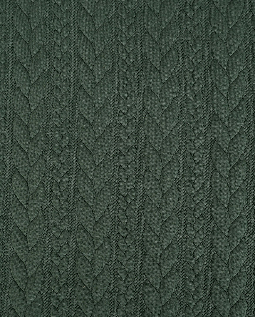 Palmikkokuvioitu trikookangas on erityisrakenteinen materiaali, joka muistuttaa neulosta, mutta on samalla mukava ja joustava trikoo. Kankaan pinnalle prässätty palmikkokuvio luo kauniin kohokuvioisen ulkonäön, lisäten yksinkertaisiin leikkauksiin luonnetta ja tyyliä.