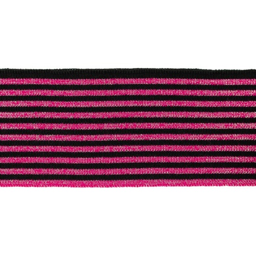 Materiaali on joustava ja kauniisti kimalteleva sisäänneulotun langan ansiosta, mikä lisää vaatteeseen hienostunutta kiiltoa ja juhlallista ilmettä. Koska resori on jo valmiina, se on helppo ommella suoraan vaatteeseen – näin säästät aikaa ja saavutat aina kauniin lopputuloksen.
